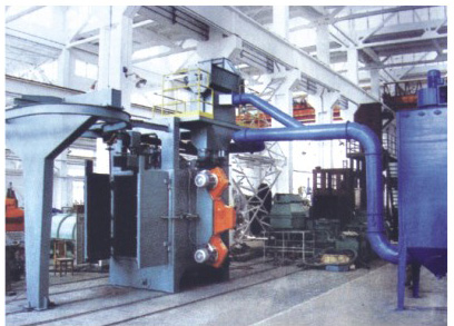 QH系列环式吊钩抛丸清理机的主要特点是:工件在抛丸自转的同时,工件随吊钩可进行