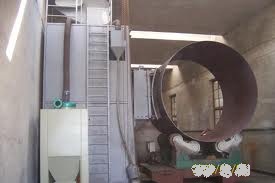 采用抛丸技术来清理风力发电机的塔筒内外壁是一种理想的工艺,本机主要用来清理大型管道及钢罐内外壁,使管道及钢罐的表面消除氧化皮和旧的油漆等附着物质,得到一定的表面粗糙度后,即可进行表面涂装保护层,提高了漆膜的附着力,并提高工件的抗疲劳强度和抗腐蚀能力,改善了工件的内在质量,延长了其使用寿命。