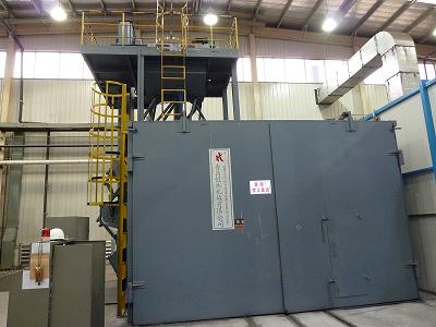 Q7630C、Q765C转台式抛喷丸清理机是在国内广泛调研的基础上进行设计改进的,清理效果良好,本机以抛丸清理为主,并有能升降的喷丸机构,对工件内腔进行补充清理,适用于水泵、汽轮机、机床、化工、建筑、铸造等行业。是大、中型铸锻件、铸钢件、焊接件表面清理和强化的理想设备。 室体系焊接结构,由左、右侧壁、大门、后侧壁、顶板组成、回转台车由台车框架、转台、托轮等组成有,为全封闭结构,升降装置与体室的密封采用输送带,输送带随着操作室的升降,由密封卷扬装置卷起和放下,达到密封和防护目的,分离器丸砂混合物经提升机送到滚筒筛的内螺旋将残余杂物排出。 大门由气缸开启。